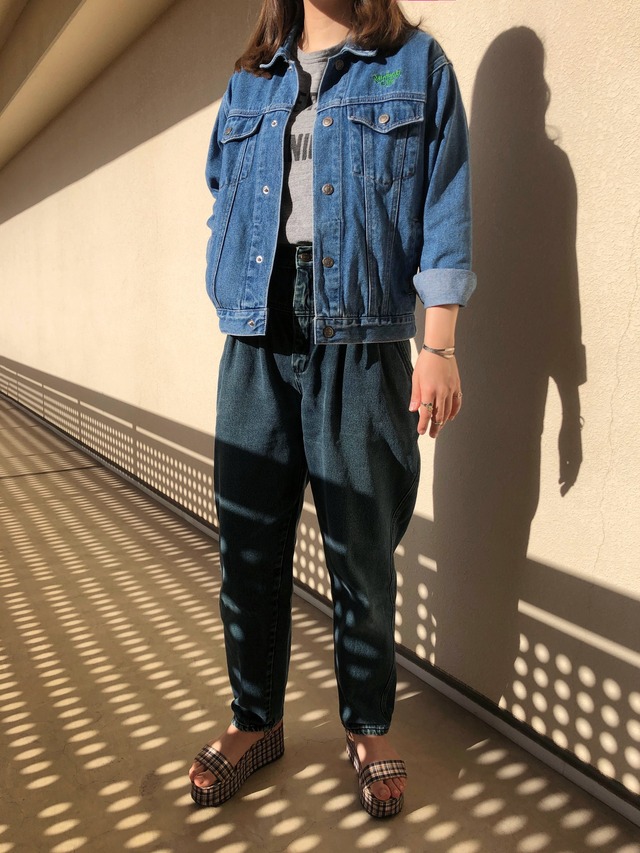 デザイン性の高いデニムジャケット。 ペプラム調のシルエットやステッチ使いがとても可愛いです。コンパクトなサイズ感もバランスが良いですよね。裏地がネルシャツ生地なので暖かいです〜。 袖口のファスナーでシルエットの雰囲気が変わるので気分に合わせて遊べそうです。 マジックテープで取り外し可能の肩パット付き。 - size - 着丈: 約74cm 身幅: 約60cm 肩幅: 約46cm 袖丈 約63cm ※ 着用者: 158cm - color - blue - material - コットン 袖口の裏地はポリエステル 古着のため、若干の使用感がございます。 古着の特性をご理解頂いた上ご購入下さい。 ※ ATTENTION ※ • 採寸は平置き状態で手作業で行っております。1~2cmの誤差が生じる場合がございますので予めご了承下さい。 • お品物に多少のダメージ(シミ・糸のほつれ・多少の汚れ・小さな穴・色褪せなど)が有ることがございます。できるだけ記載しておりますが、正確に全てを記載することが難しいためあくまでもUSED商品であること、古いものの良さとしてご理解のうえご購入をお願い致します。 • ご覧の端末や画面によって、実際の商品と色味や状態が異なる場合がございますので予めご了承下さい。