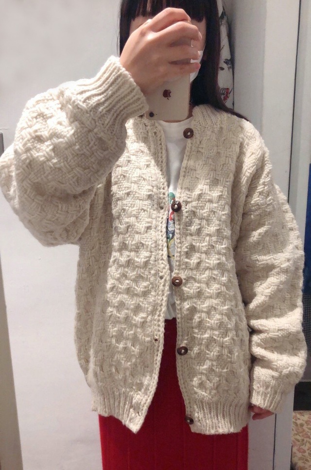 大きめサイズのフィッシャーマンニットカーディガンです。 大きめのサイズ感が網目がとても可愛いです。 大きめサイズ特有の後ろ姿のほわっとしたシルエットがまたとても可愛いです。 定番のアイテムなので流行り関係なく長く着用いただける1着は持っておきたいアイテムです。 - size - 着丈: 約68cm 身幅: 約58cm 肩幅: 約62cm 袖丈 約54cm ※ 着用者: 158cm - color - off white - material - ウール 古着のため、使用感や毛羽立ちがございます。 古着の特性をご理解頂いた上ご購入下さい。 ※ ATTENTION ※ • 採寸は平置き状態で手作業で行っております。1~2cmの誤差が生じる場合がございますので予めご了承下さい。 • お品物に多少のダメージ(シミ・糸のほつれ・多少の汚れ・小さな穴・色褪せなど)が有ることがございます。できるだけ記載しておりますが、正確に全てを記載することが難しいためあくまでもUSED商品であること、古いものの良さとしてご理解のうえご購入をお願い致します。 • ご覧の端末や画面によって、実際の商品と色味や状態が異なる場合がございますので予めご了承下さい。