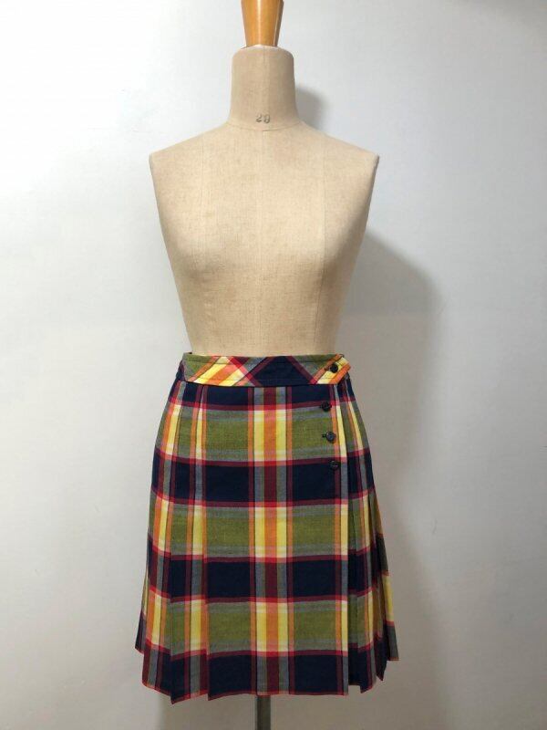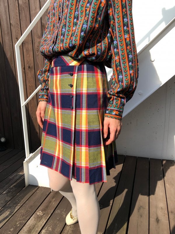 イエローとネイビーの70年代のプリーツスカートです。