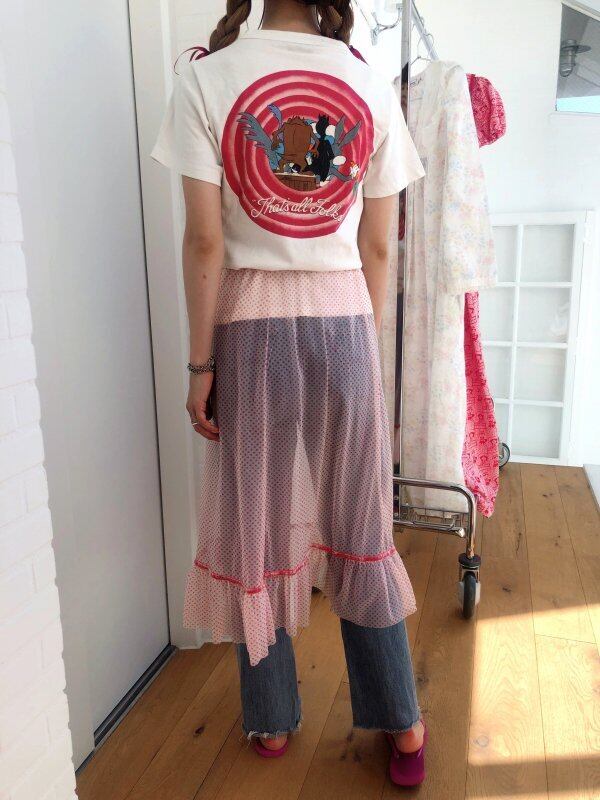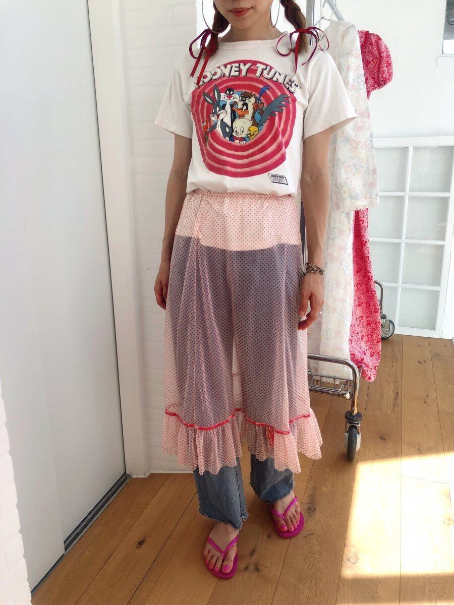 ピンクのドットや裾部分のギャザーやリボンがアクセントになっていてとっても可愛いです☺