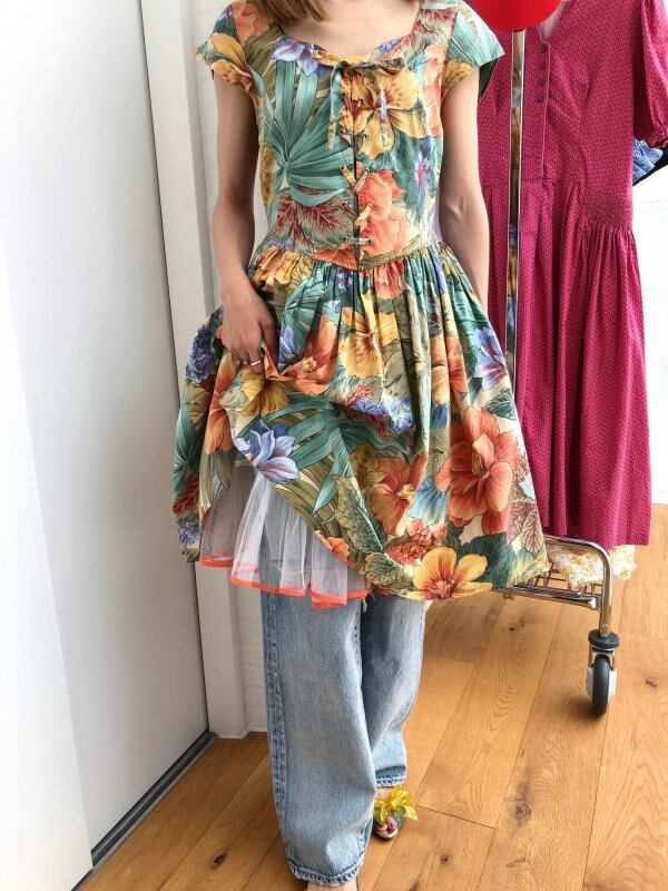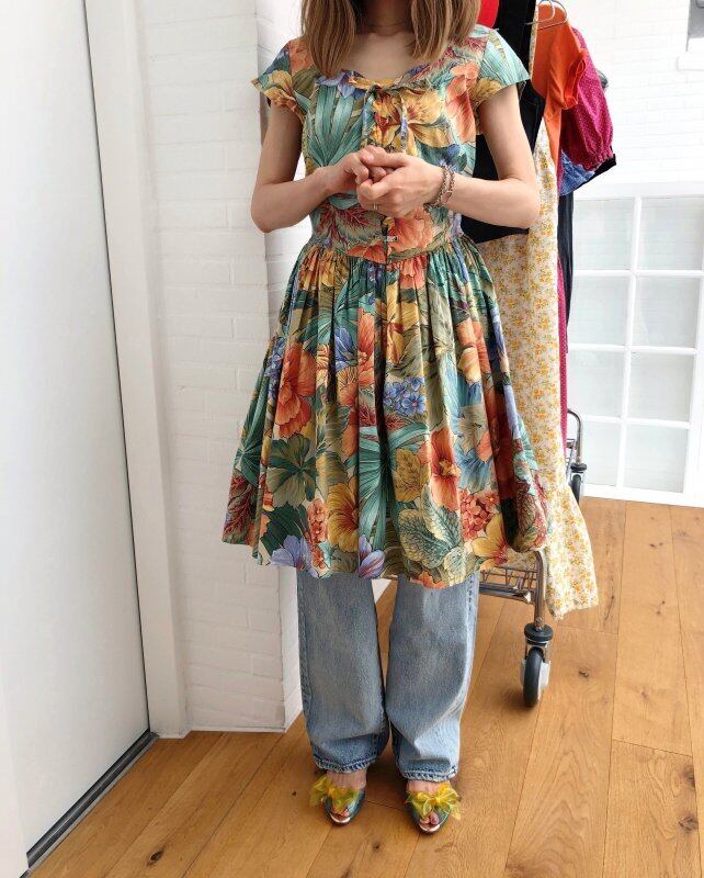 身頃部分がレースアップになっているので、サイズは調整可能です。デニムに合わせたり、一枚で着たり夏を楽しめるドレスです☺