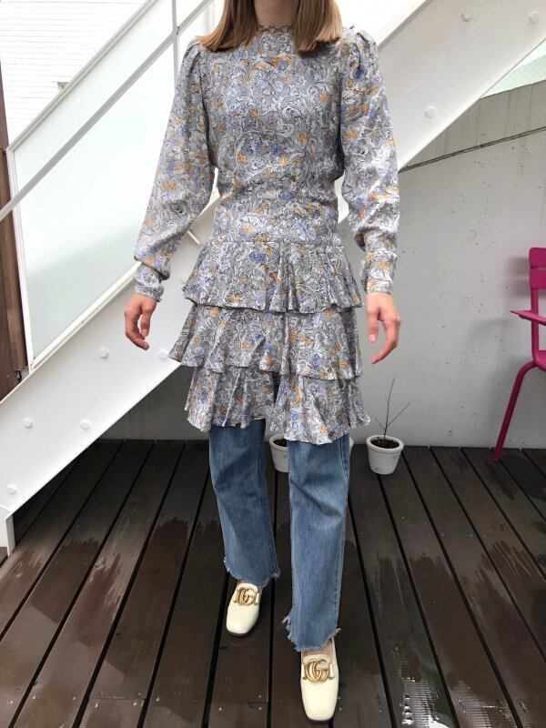 植物モチーフの柄やフリルのスカート、シルクの素材感がとても可愛いです☺