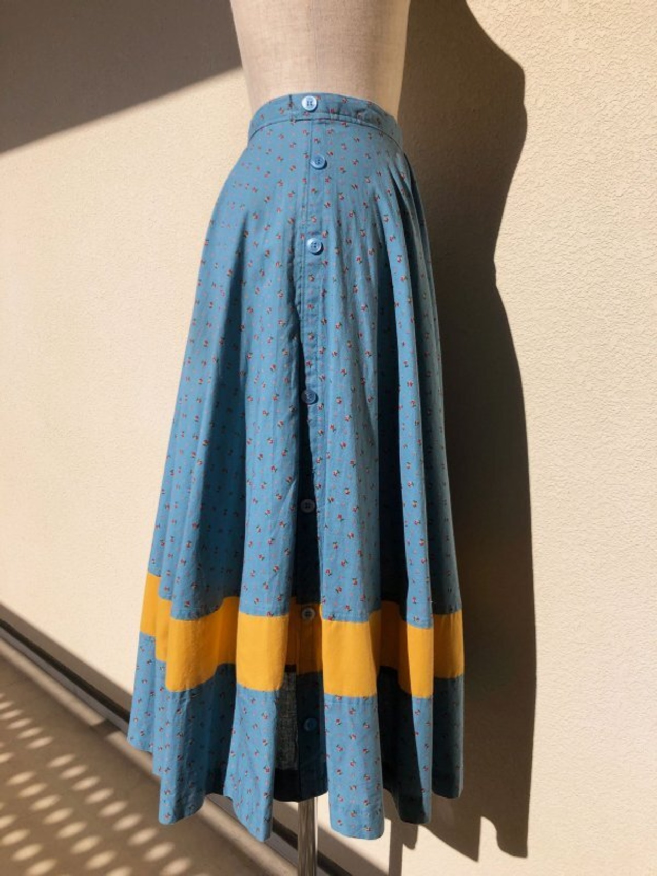 ハンドメイドのライトブルーの小花柄ボリュームフレアスカートです。