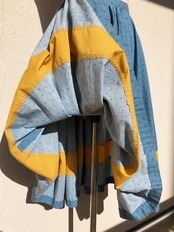 ブルーとイエローはグレーと相性抜群なので、グレーTシャツやスウェットやソックスと合わせても可愛いですし、冬はフィッシャーマンニットに厚手のグレーのタイツをあわせてもすごく可愛いと思います☺