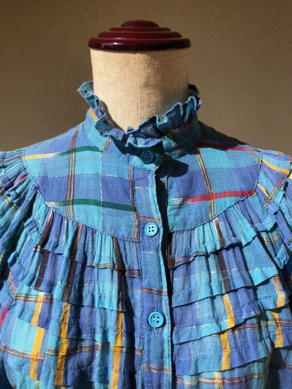 襟と首回りの細かい段々フリル、パフスリーブのふんわり加減と素材感がとにかく可愛いです☺