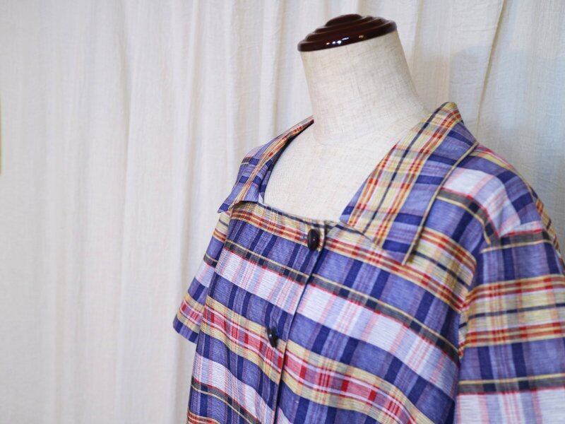 薄いパープルがベースのチェックワンピースです。
