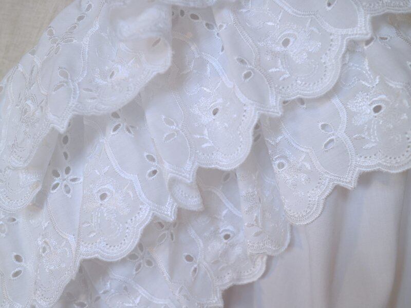 襟や袖口のレースやパフスリーブがロマンティックですごく可愛いです☺