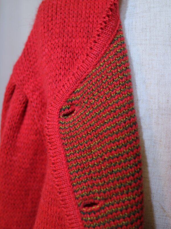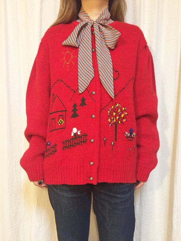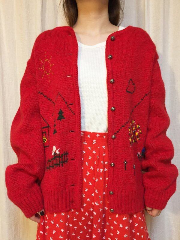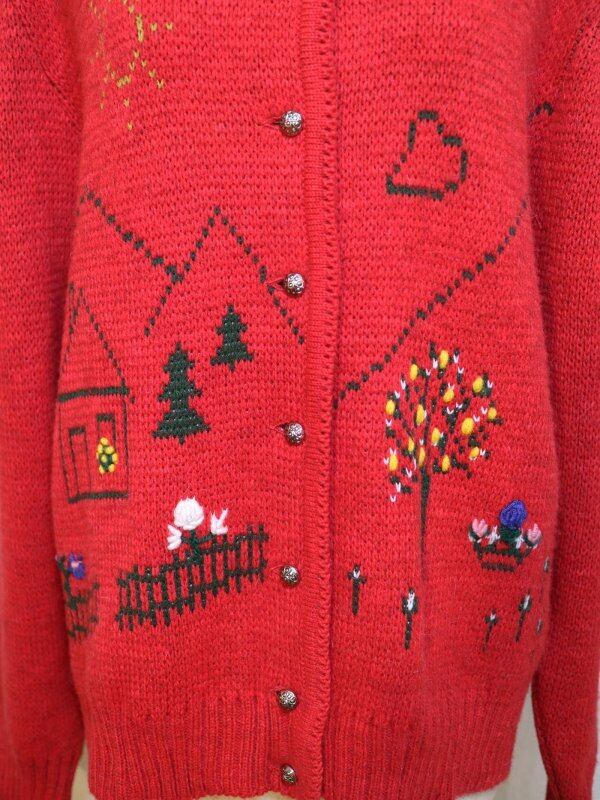 赤色の刺繍ニットカーディガンです。