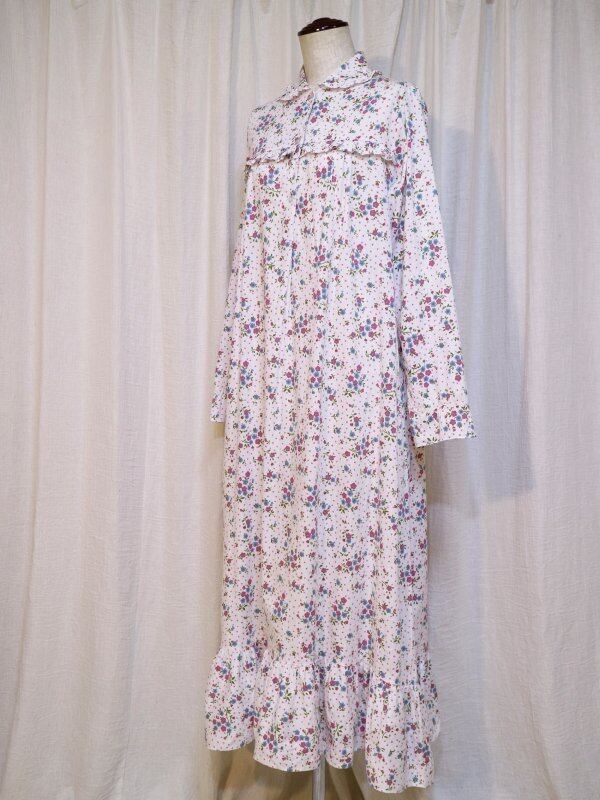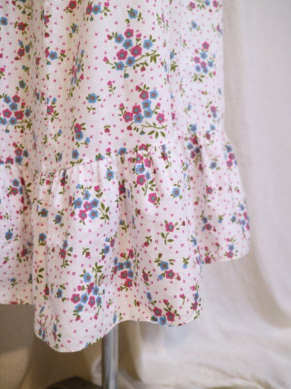 フリルと花柄の組み合わせはかなりガーリーな印象がありますが、こちらのドレスはホワイトに小花柄なのでクドくないのが◎