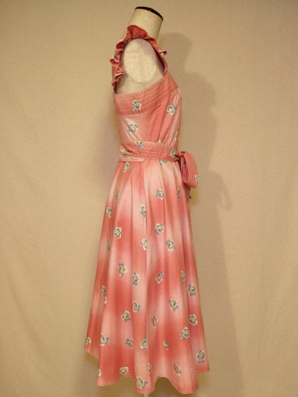 ヨーロッパのヴィンテージなので、とにかく生地が可愛く、袖のフリルやウエストのリボンなどすべてが可愛いです☺