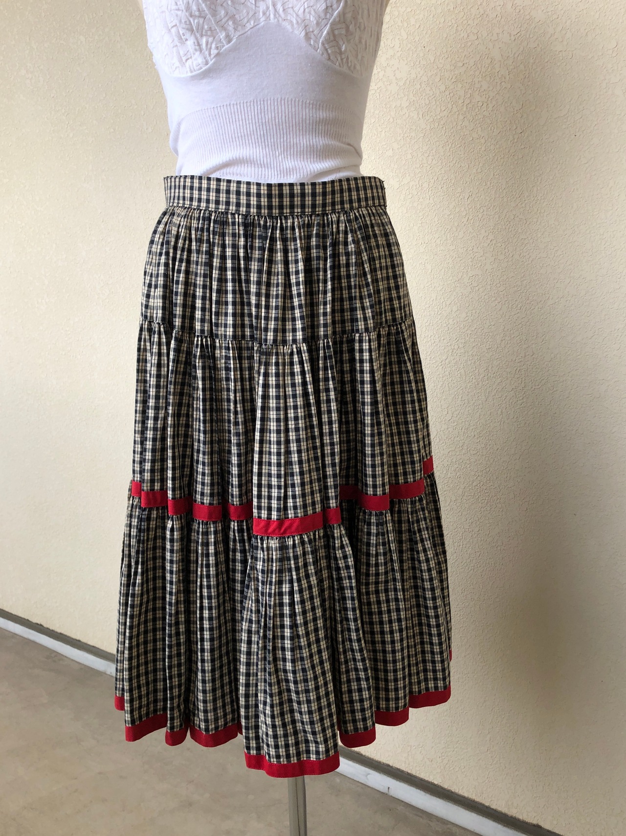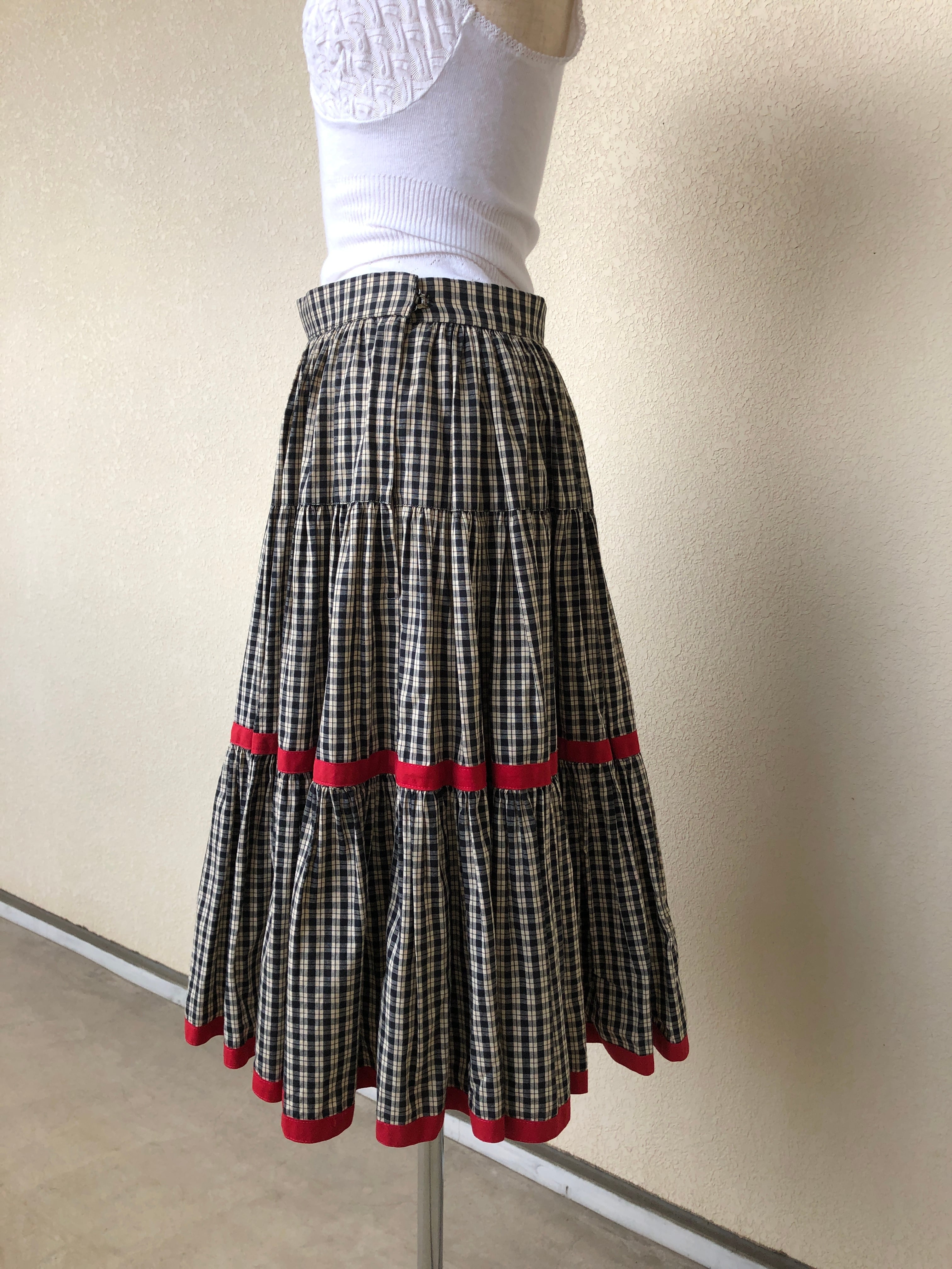red ribbon check skirt