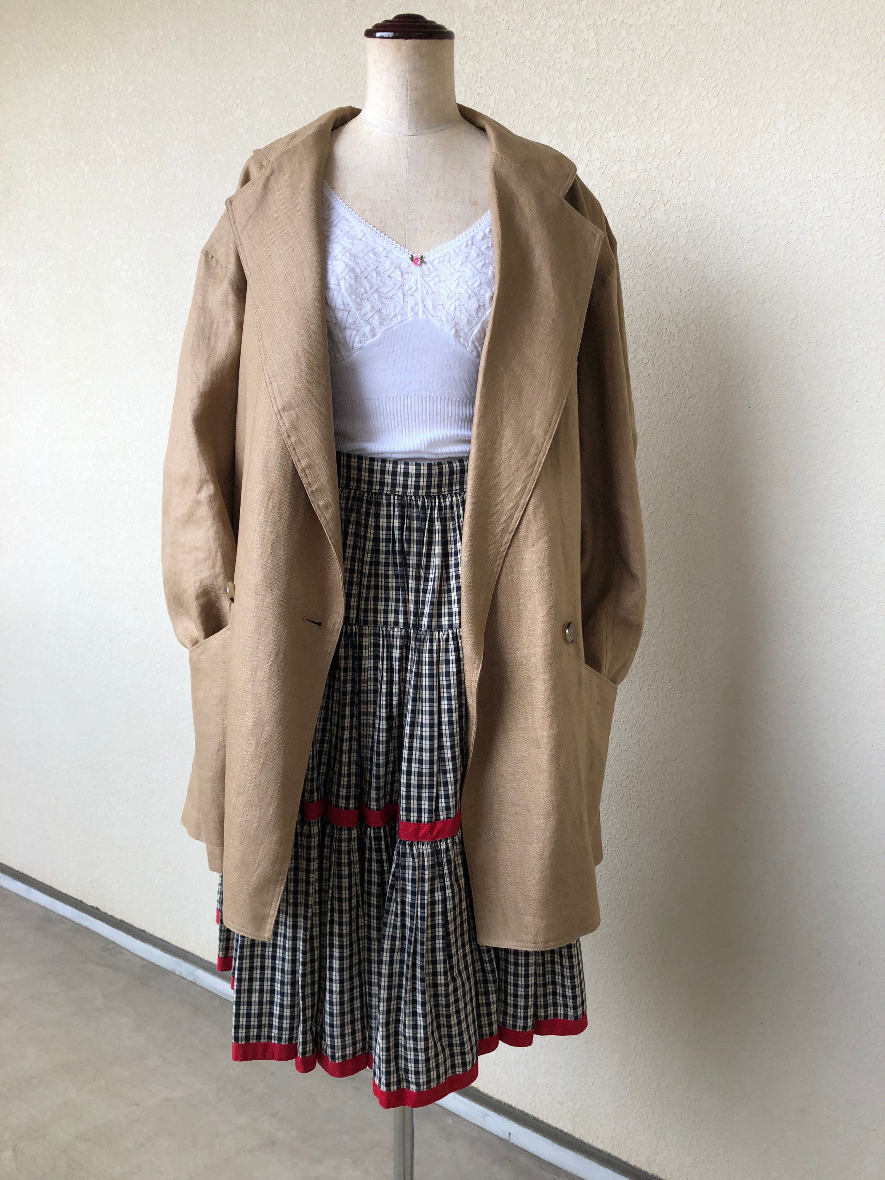 色味もベージュとブラックのギンガムチェックなのでパキッとしすぎず、小慣れた雰囲気が素敵です。何にでも合わせやすく着まわしもたくさんできると思います。
