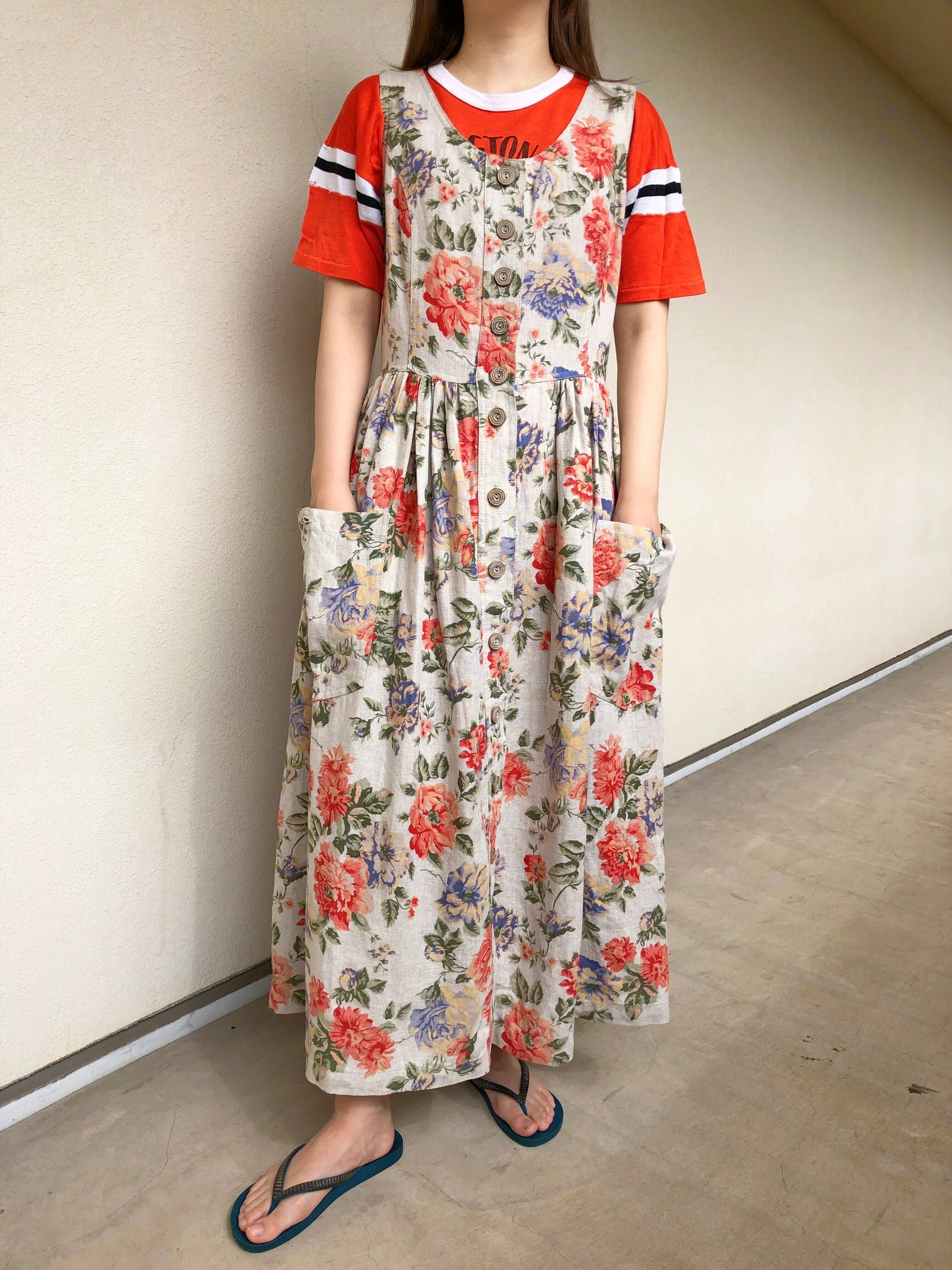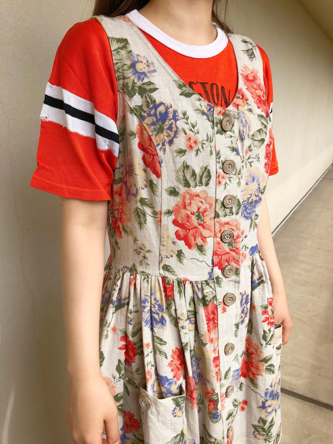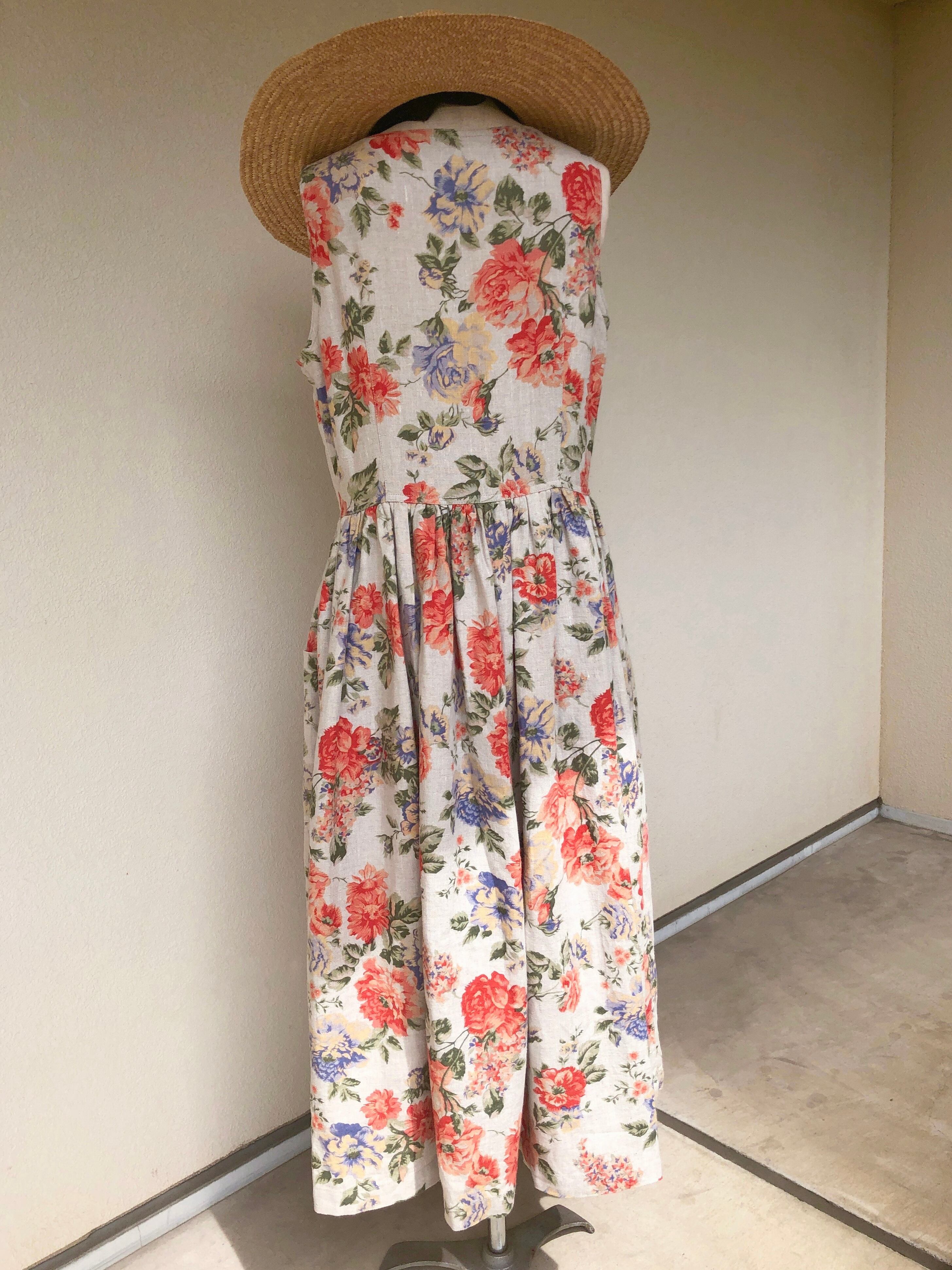 淡いお花柄とリネンの素材感とボリュームがたまらなく可愛いです。