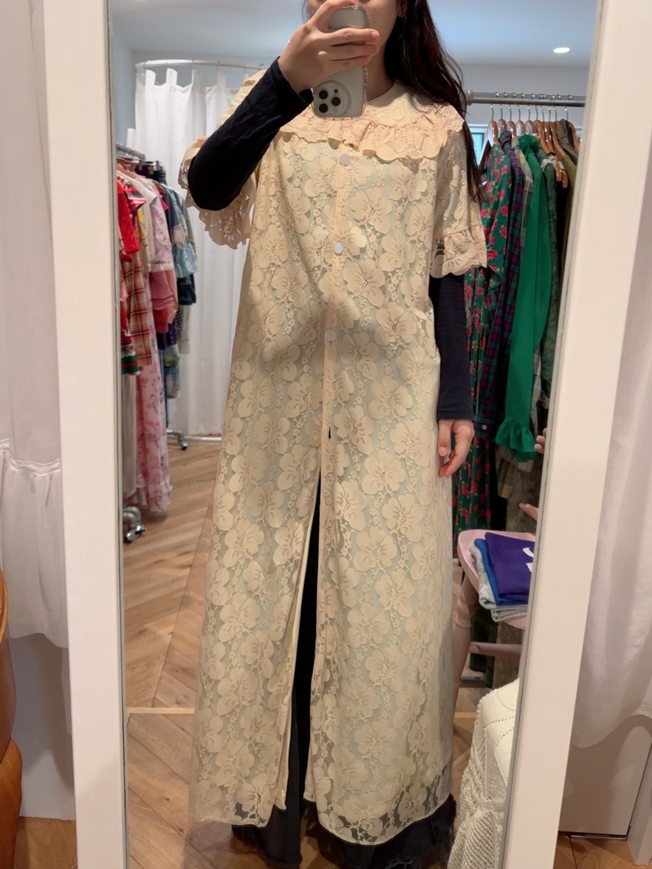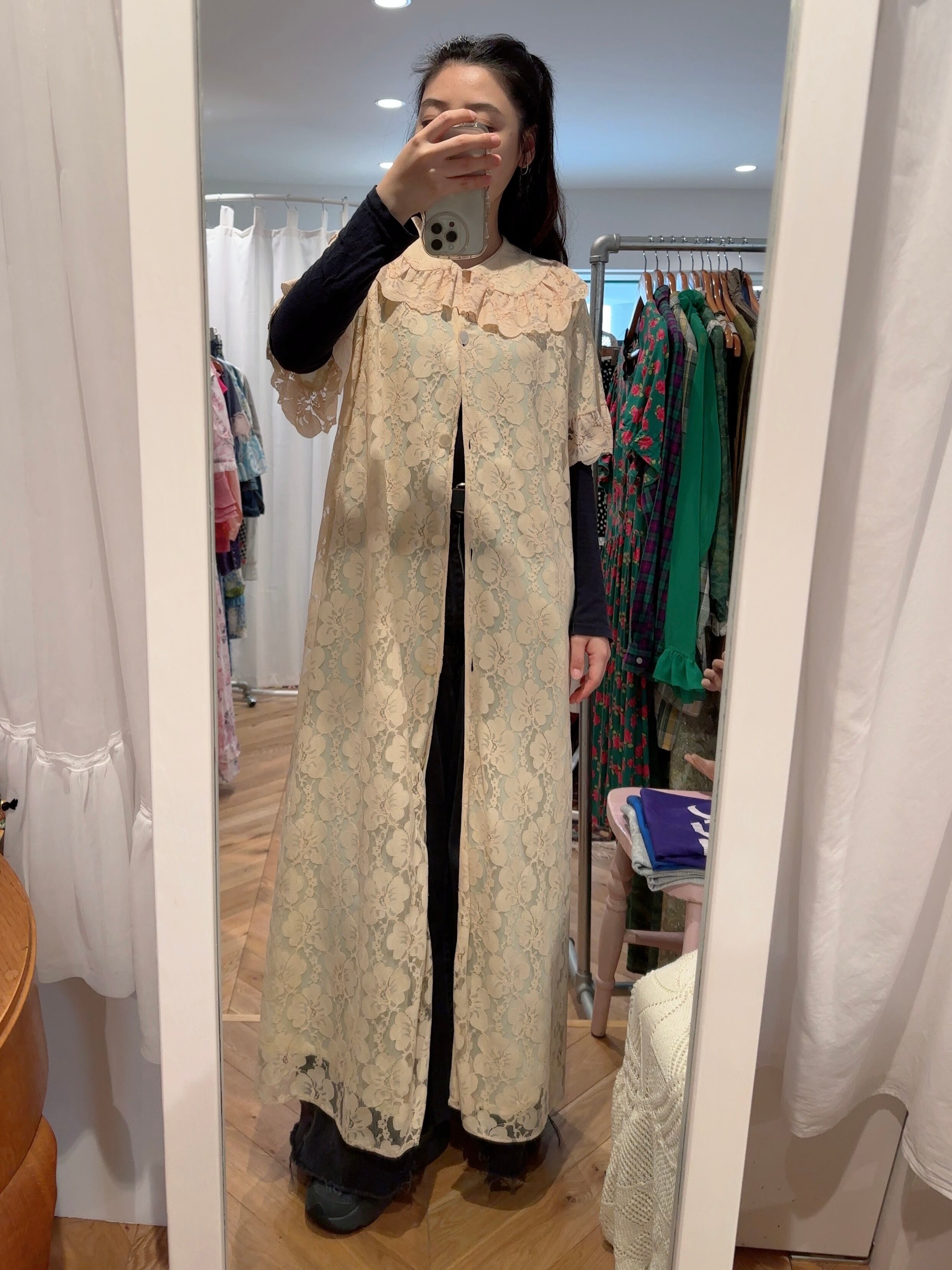 60's flower lace house coat