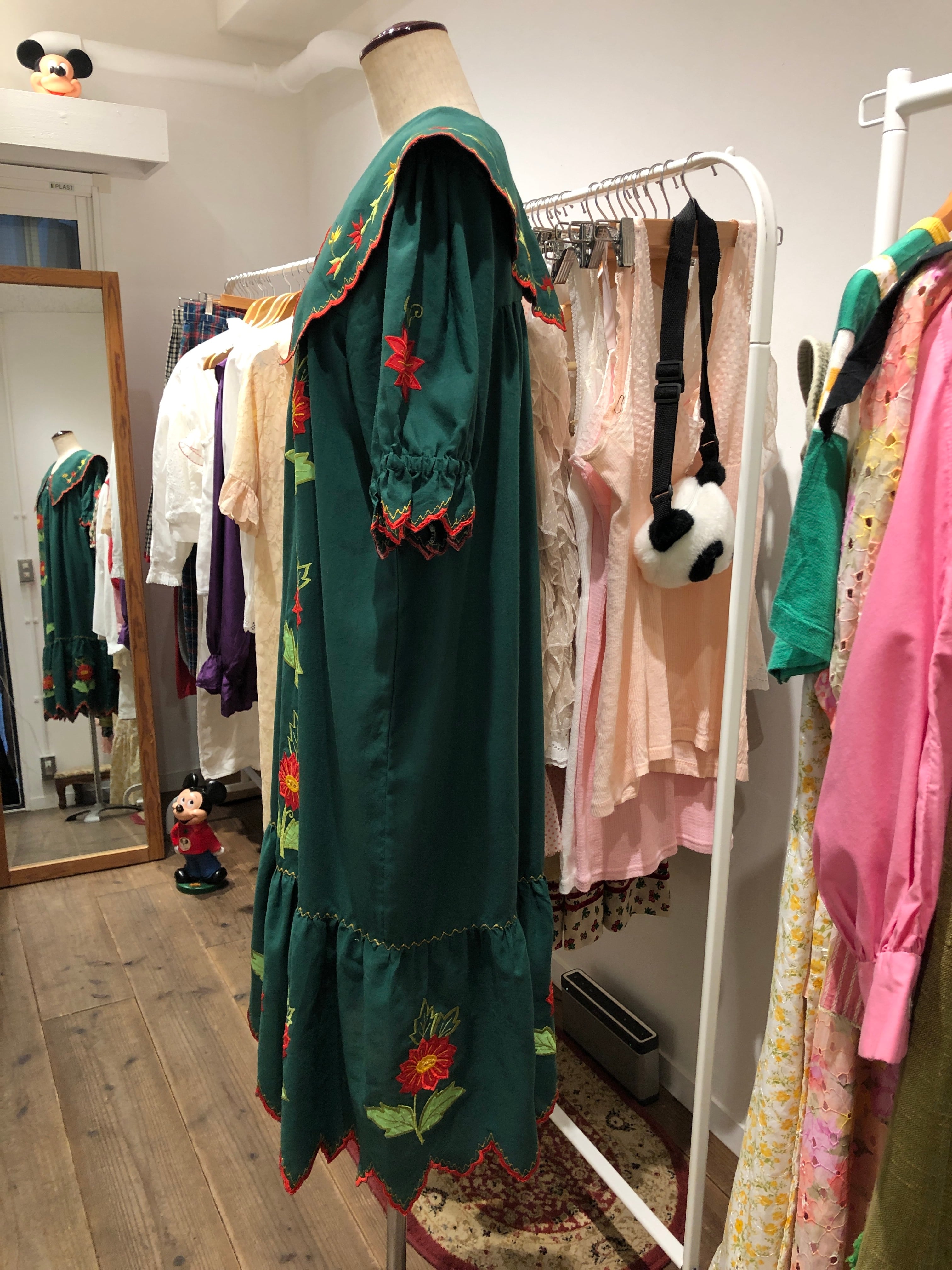 お花モチーフの刺繍がポイントのビックカラーのワンピースです。