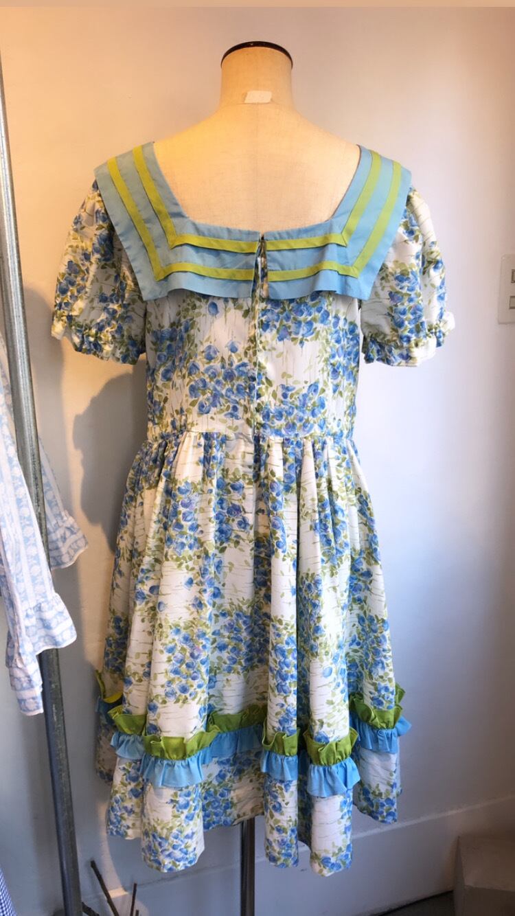 セーラーカラーのような襟と裾のコードのフリルがとても可愛いです。