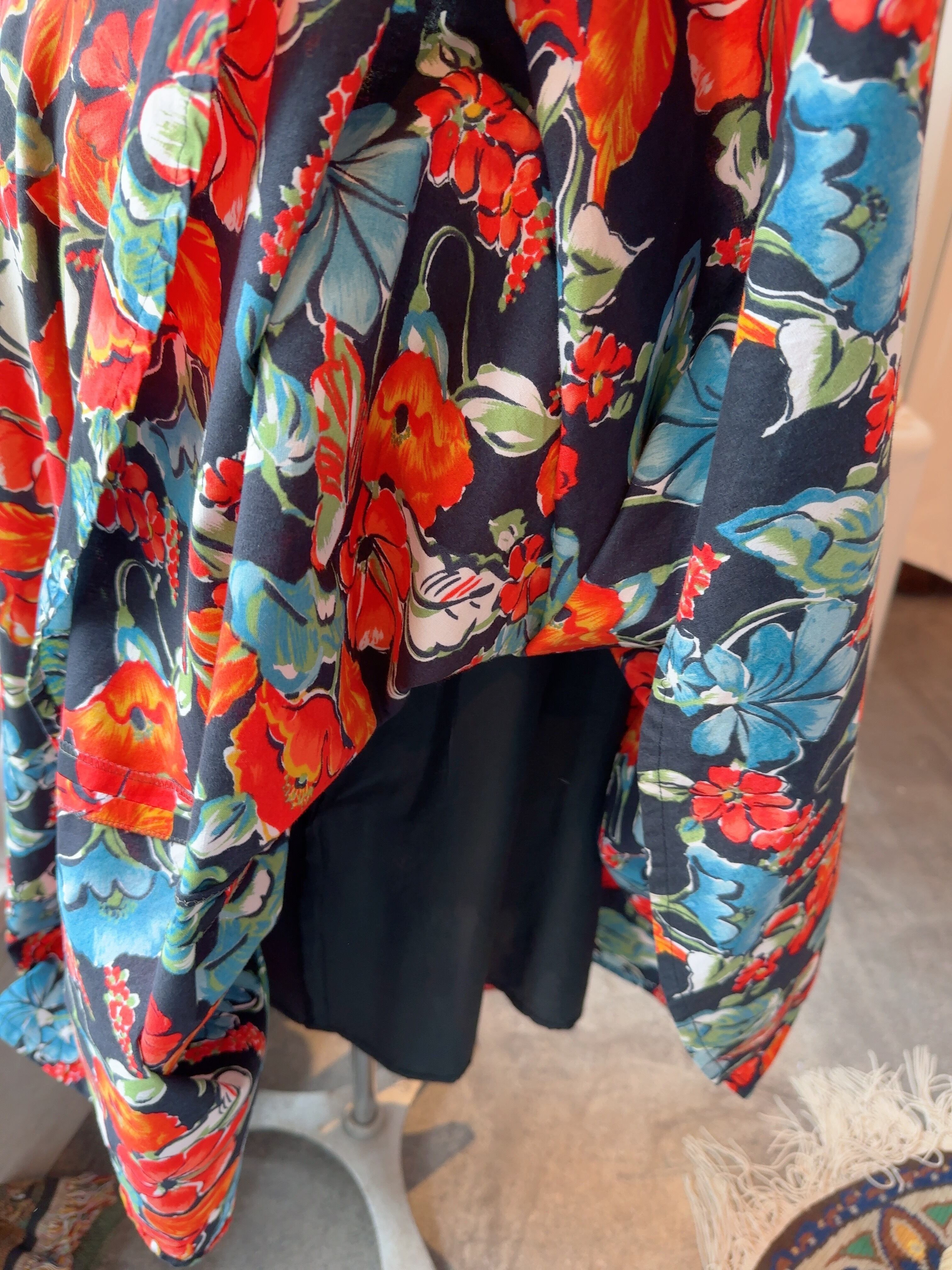 大きめのお花柄ですが、ベースがブラックで色味や柄が落ち着いてるので夏だけではなく、オールシーズン着用いただけます。
