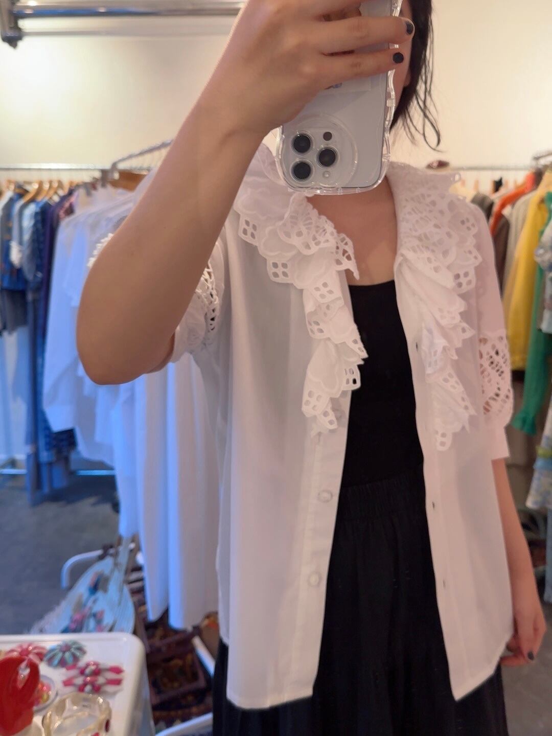 襟のレースや袖口のカットワークにうっとりしてしまいます。