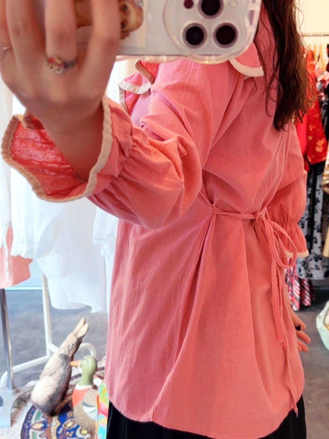pink ruffle blouse