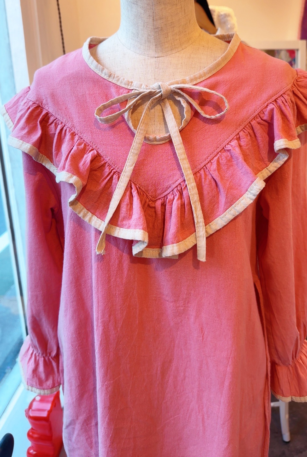 ミニワンピース位の丈感でシワ加工のようなコットン素材です。