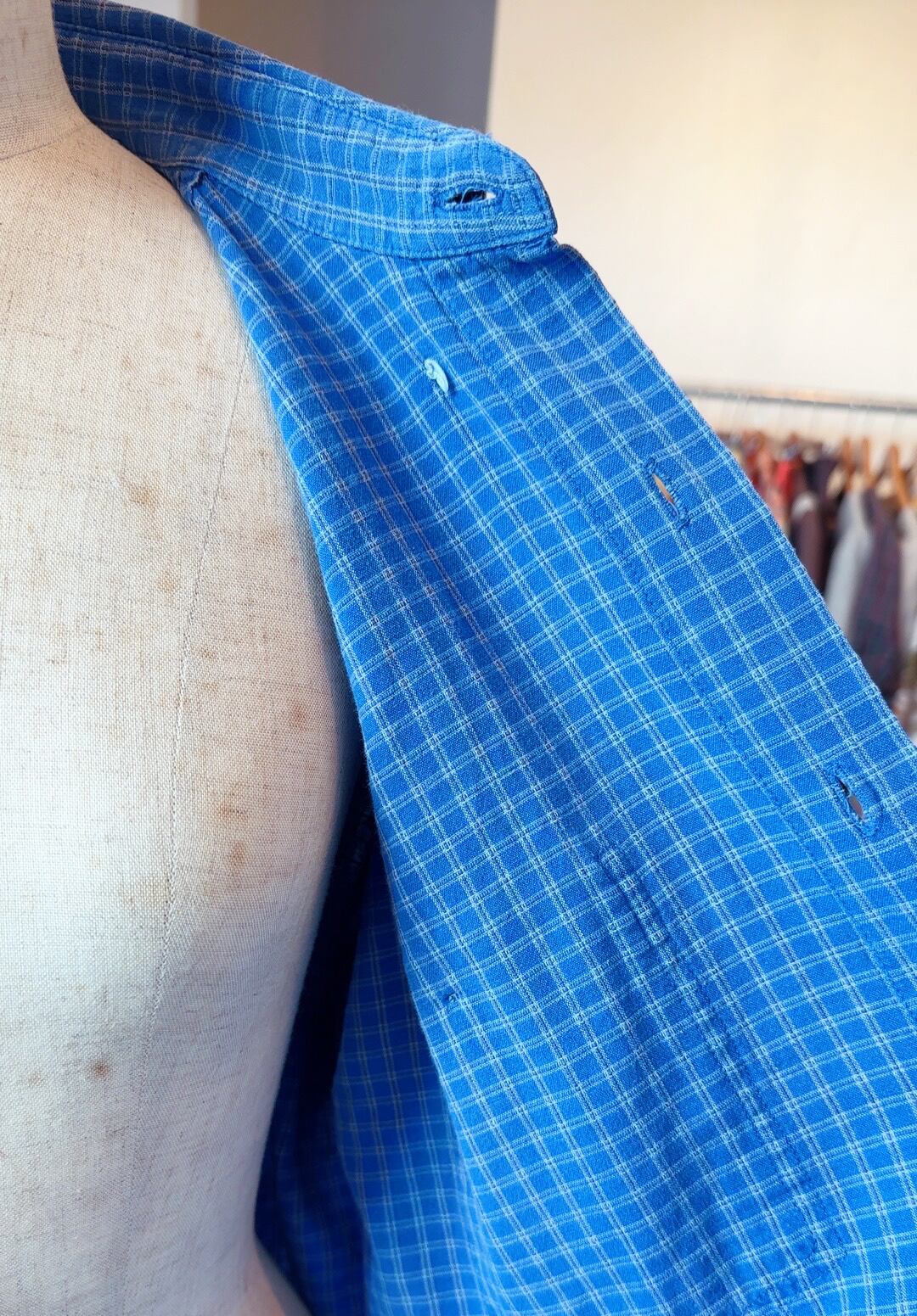ブルーのチェック柄のコットンシャツです。