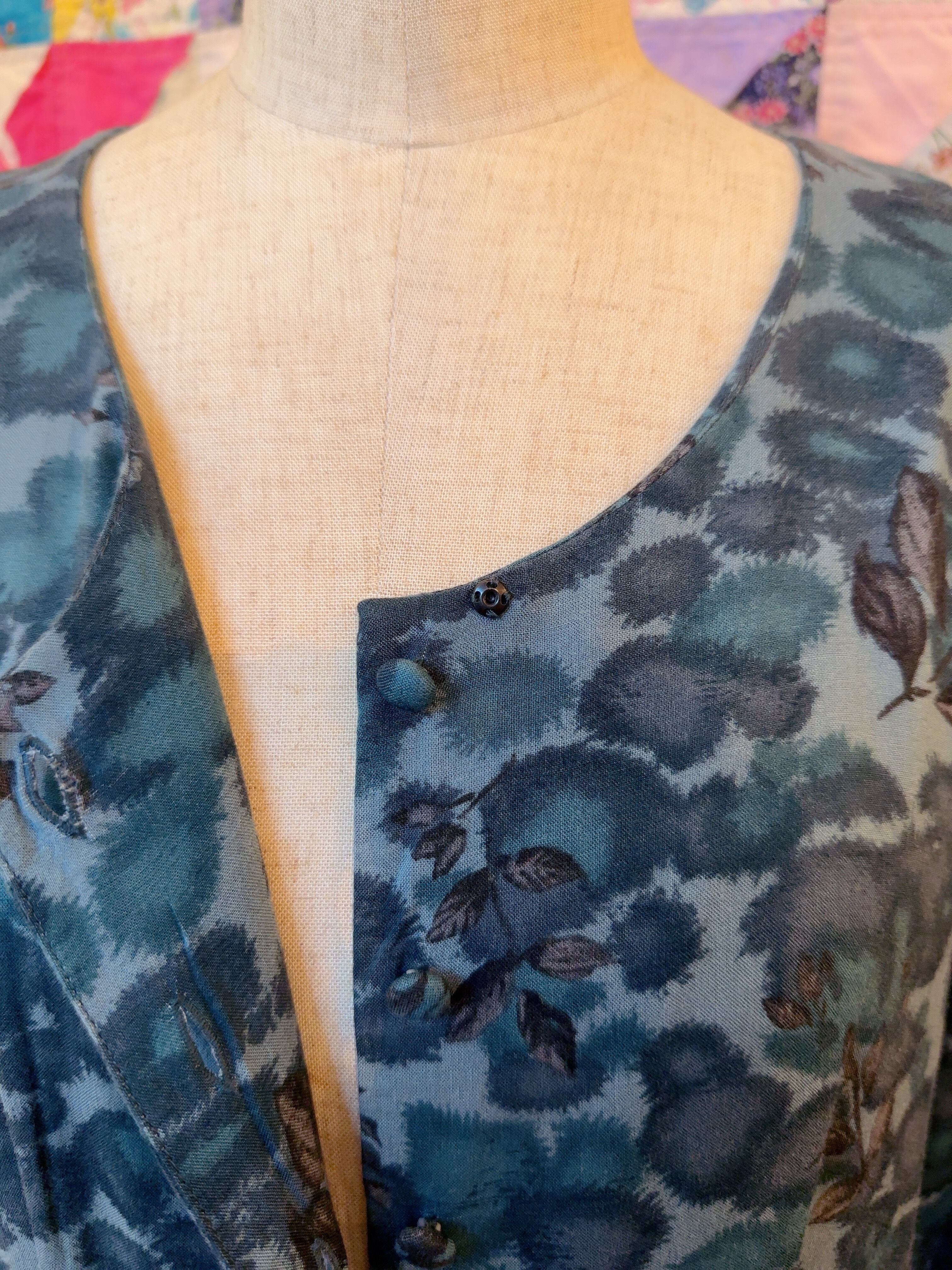 ボタンはくるみボタン、前身頃がプリーツの仕様になっています。