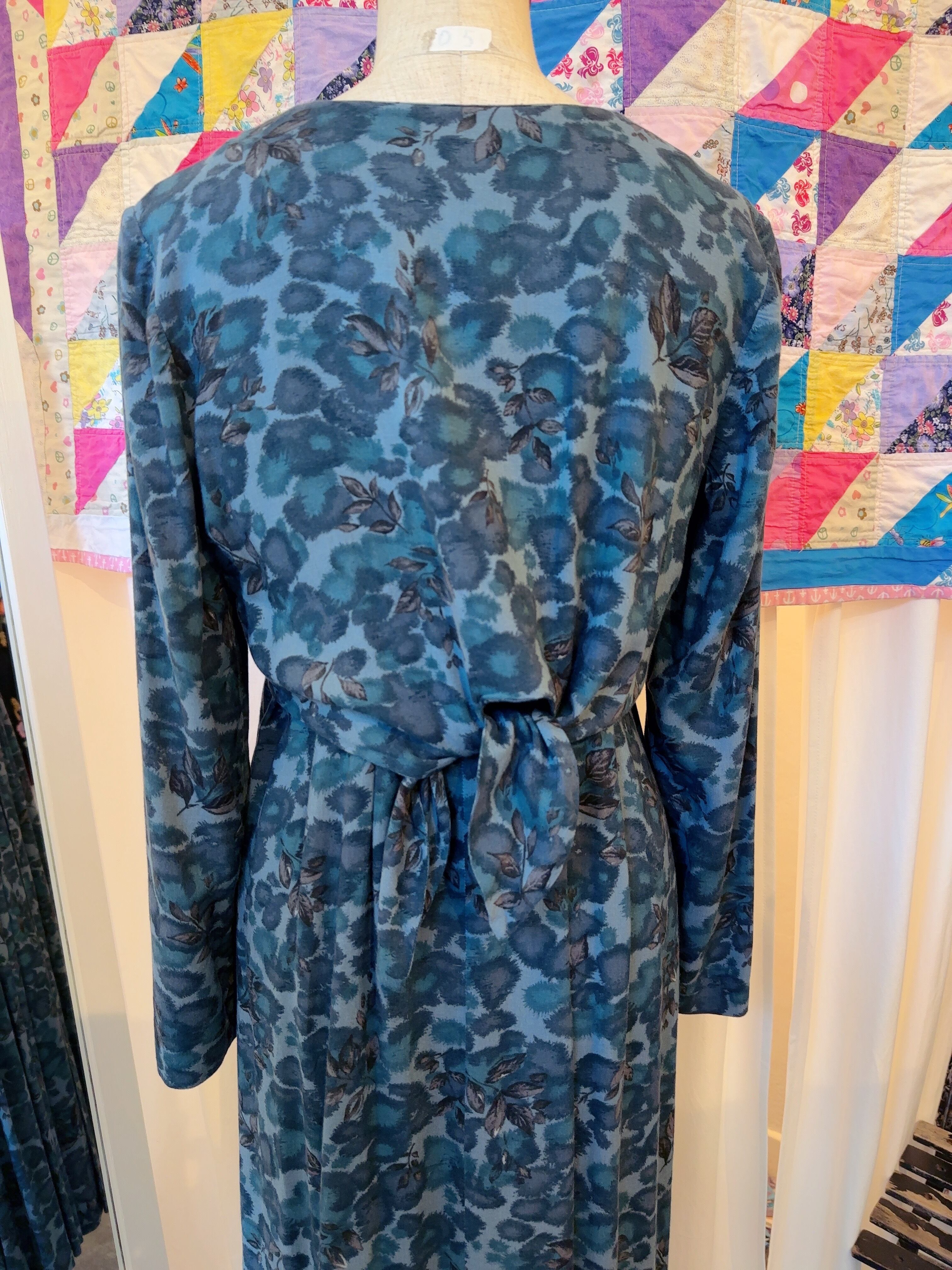 テキスタイルが目を引く、グリーンの植物柄ワンピースです。