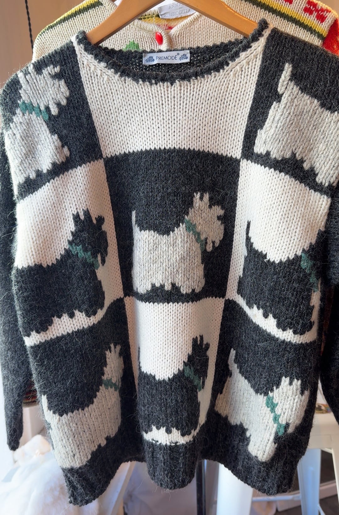スコティッシュ テリアモチーフのグレーカーディガンです。