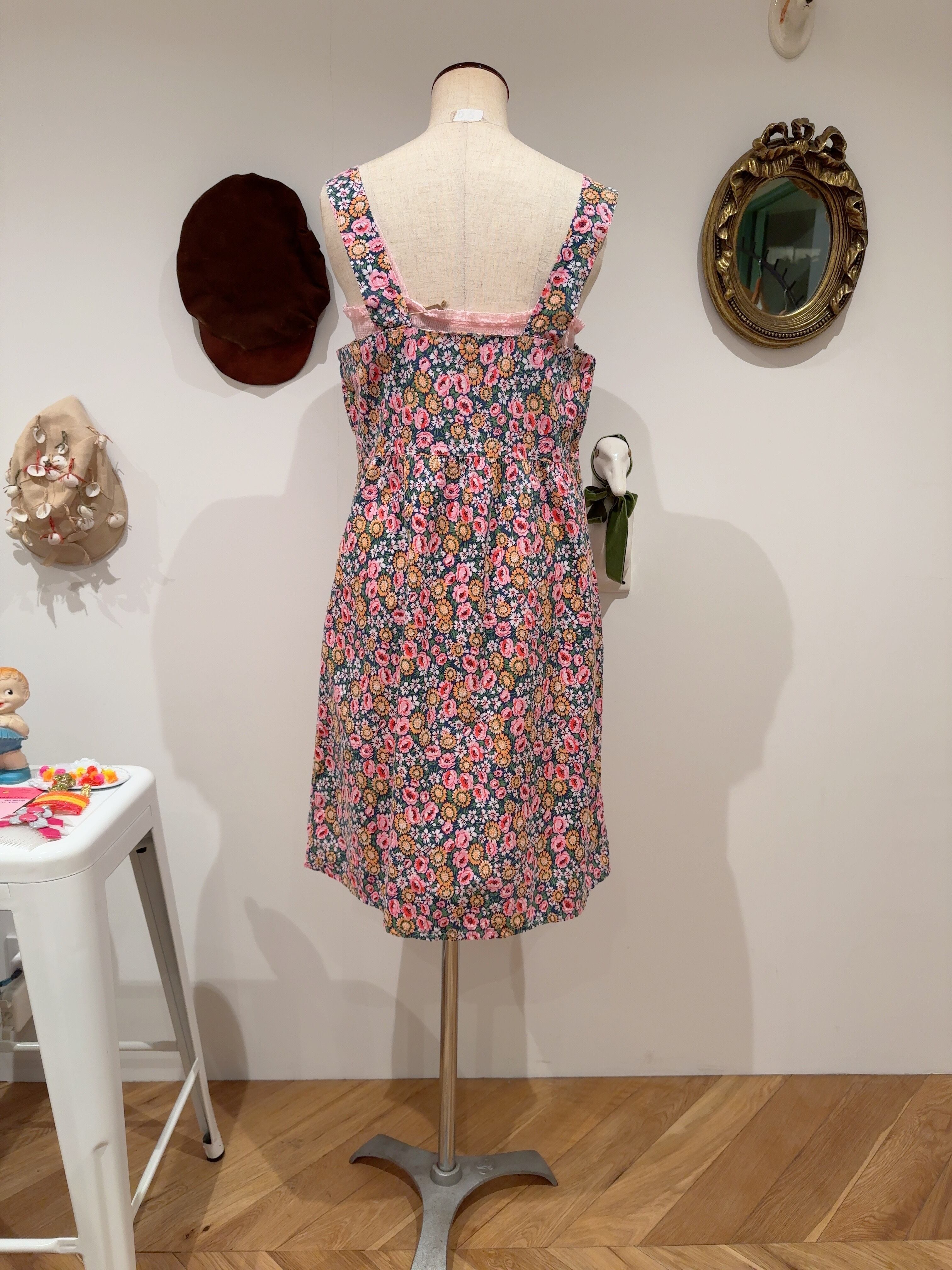 コットン生地のハンドメイドお花柄ノースリーブミニドレスです。