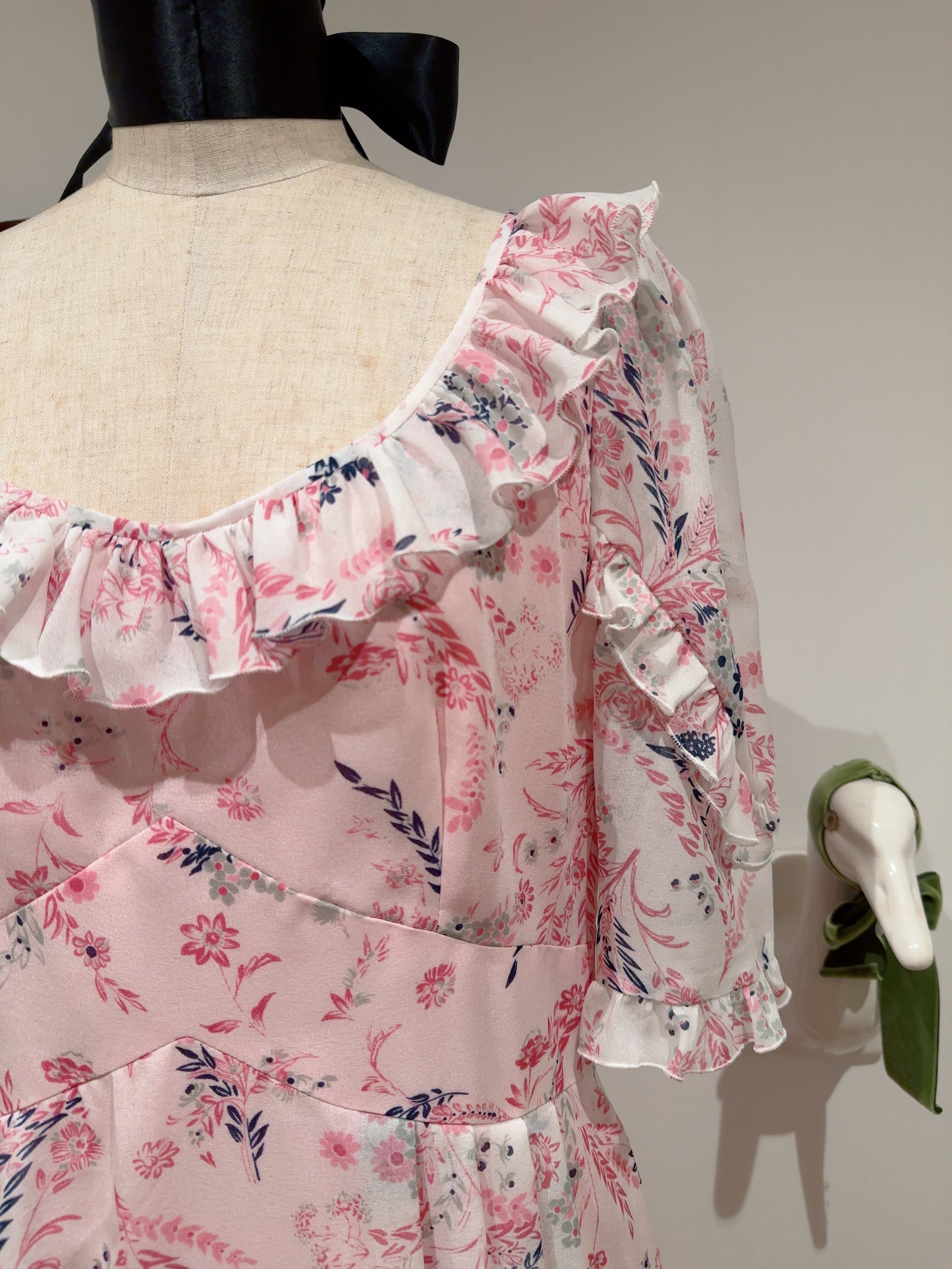 70〜80年代頃のフラワーモチーフのロングドレス。
