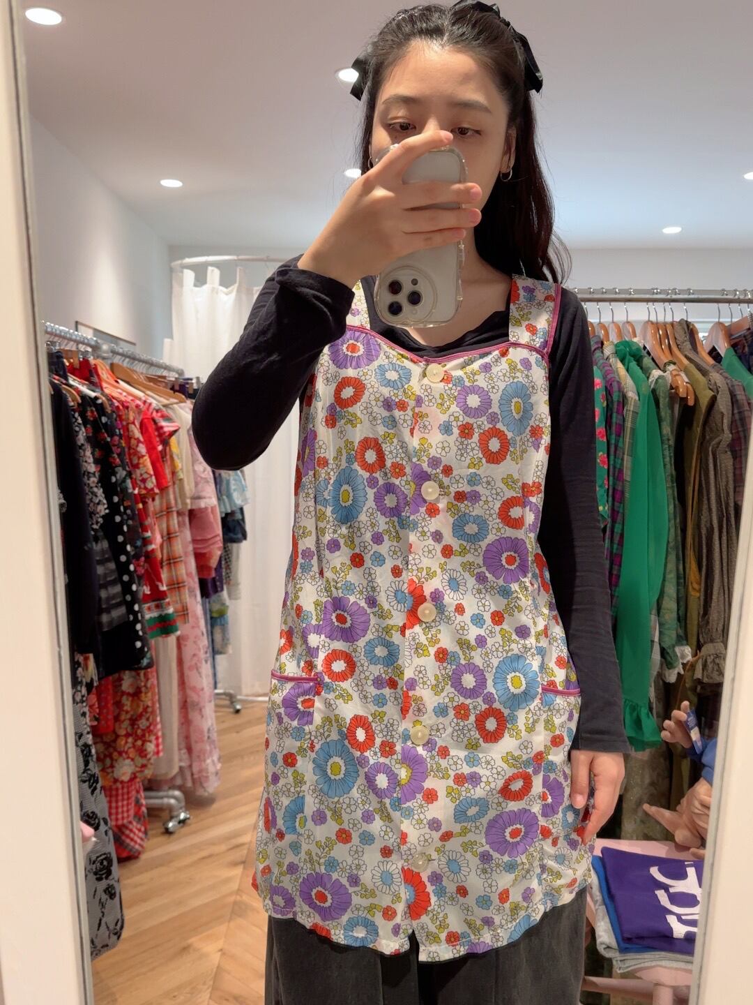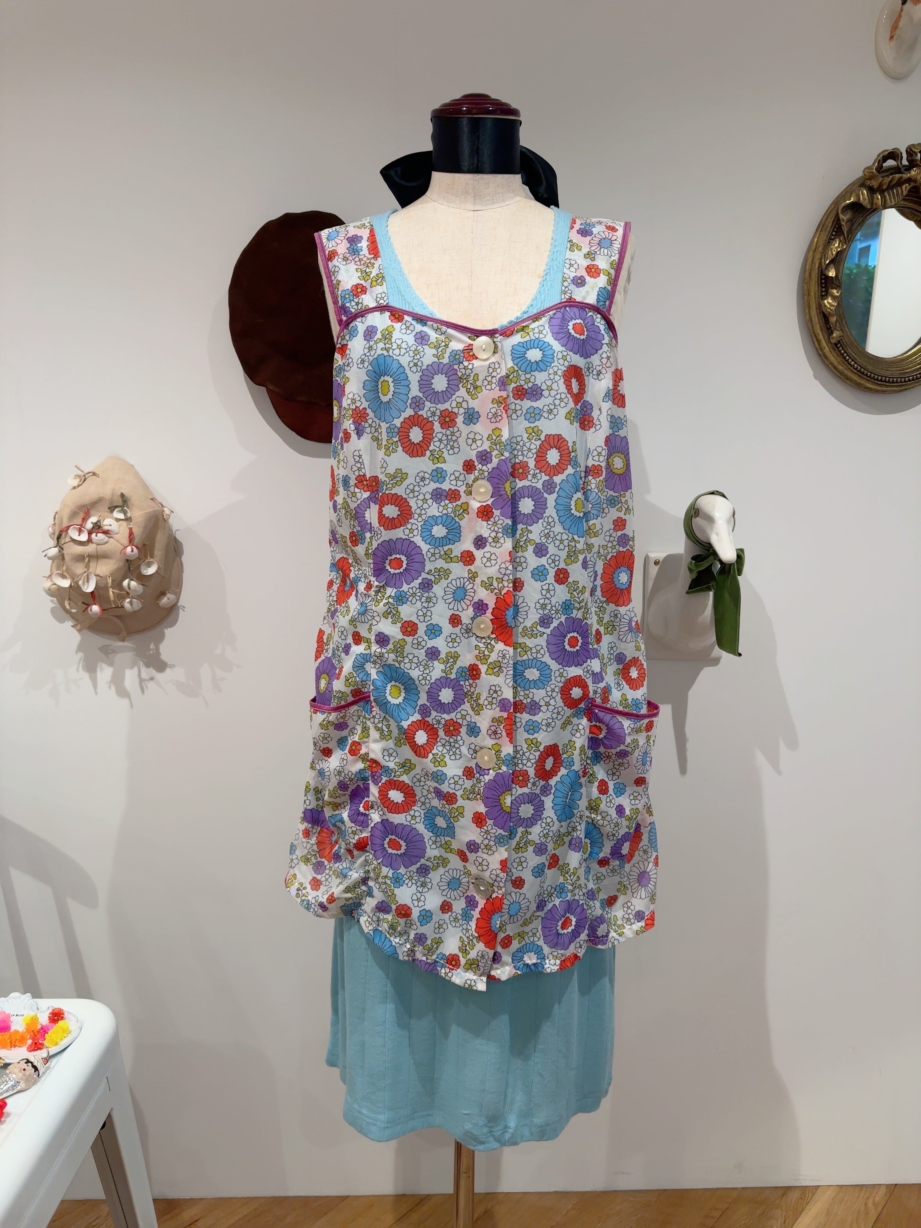 70年頃のハンドメイドのお花柄スモック。