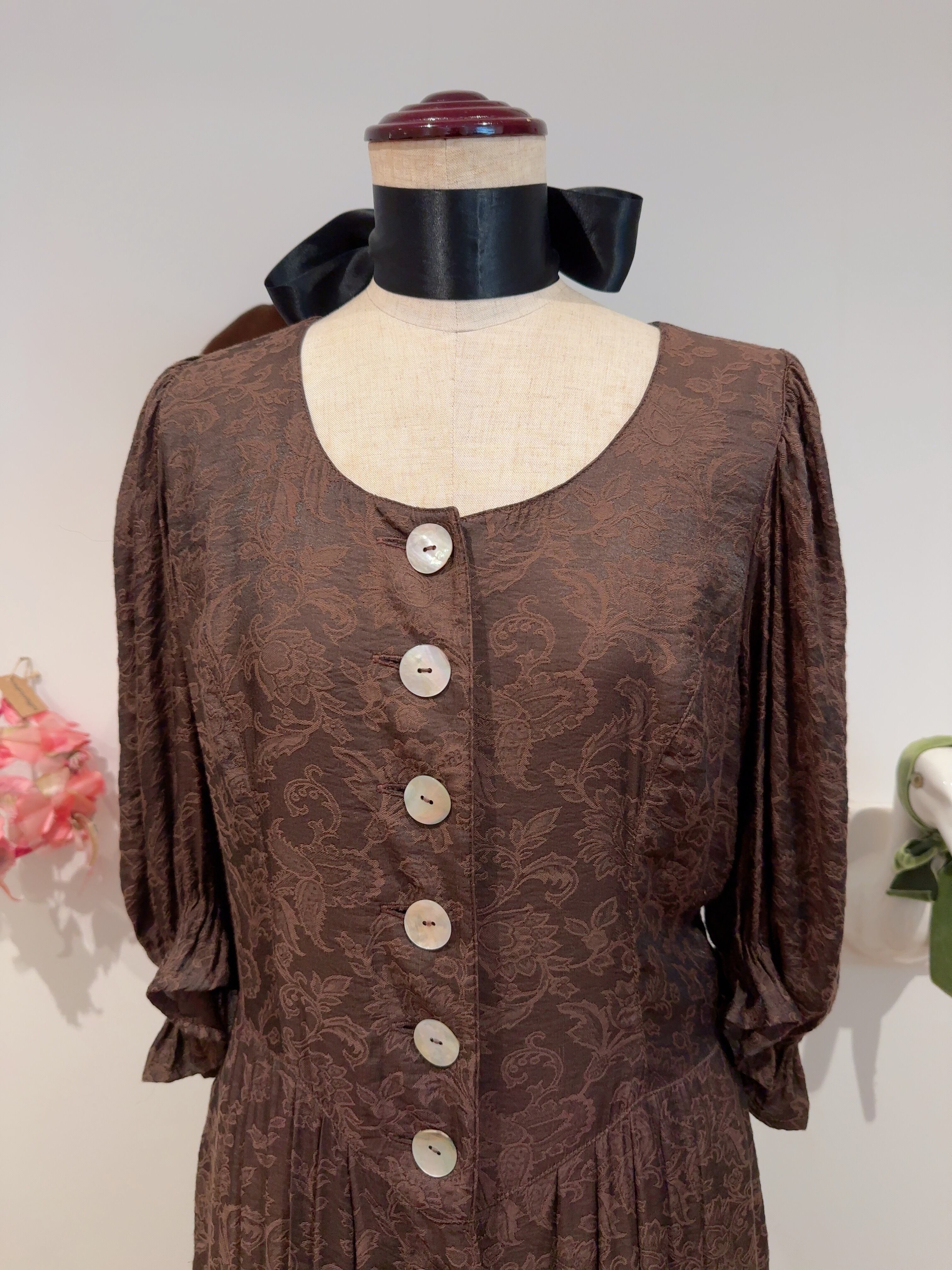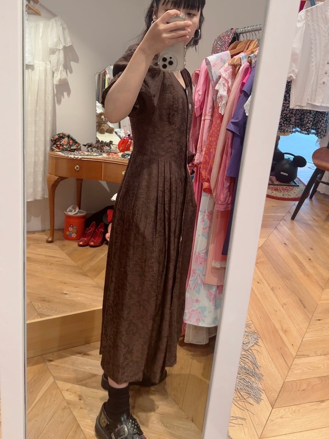 薄手のブラウンカラーの刺繍チロルドレスです。
