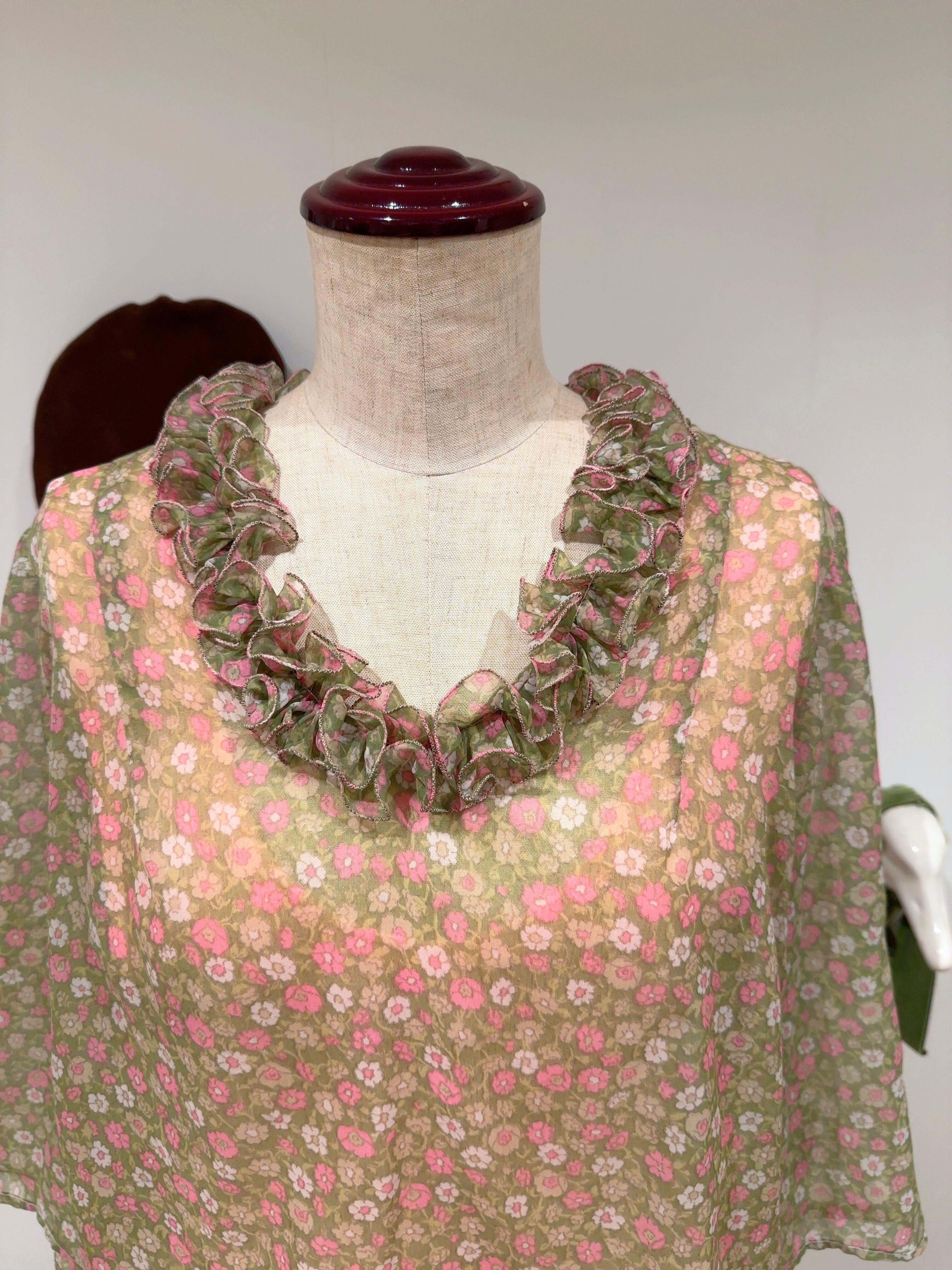 ハンドメイドのお花柄シアートップスです。