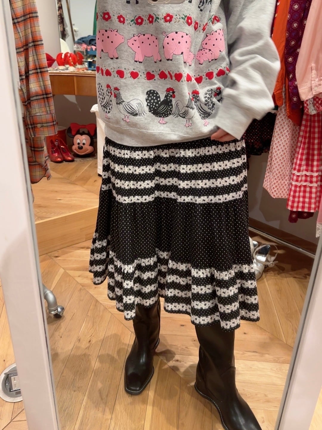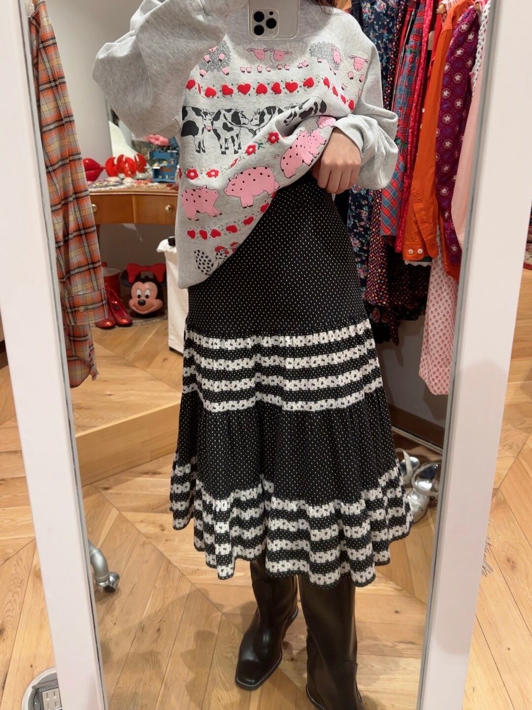 70's black dot tiered skirt