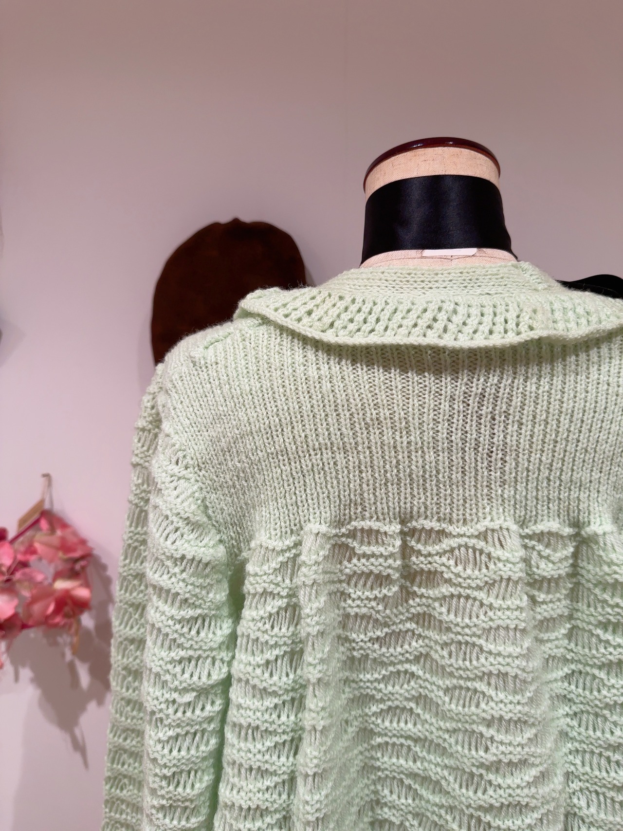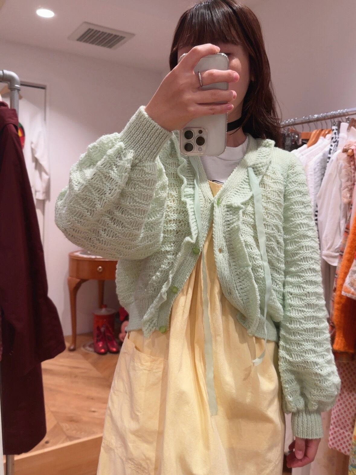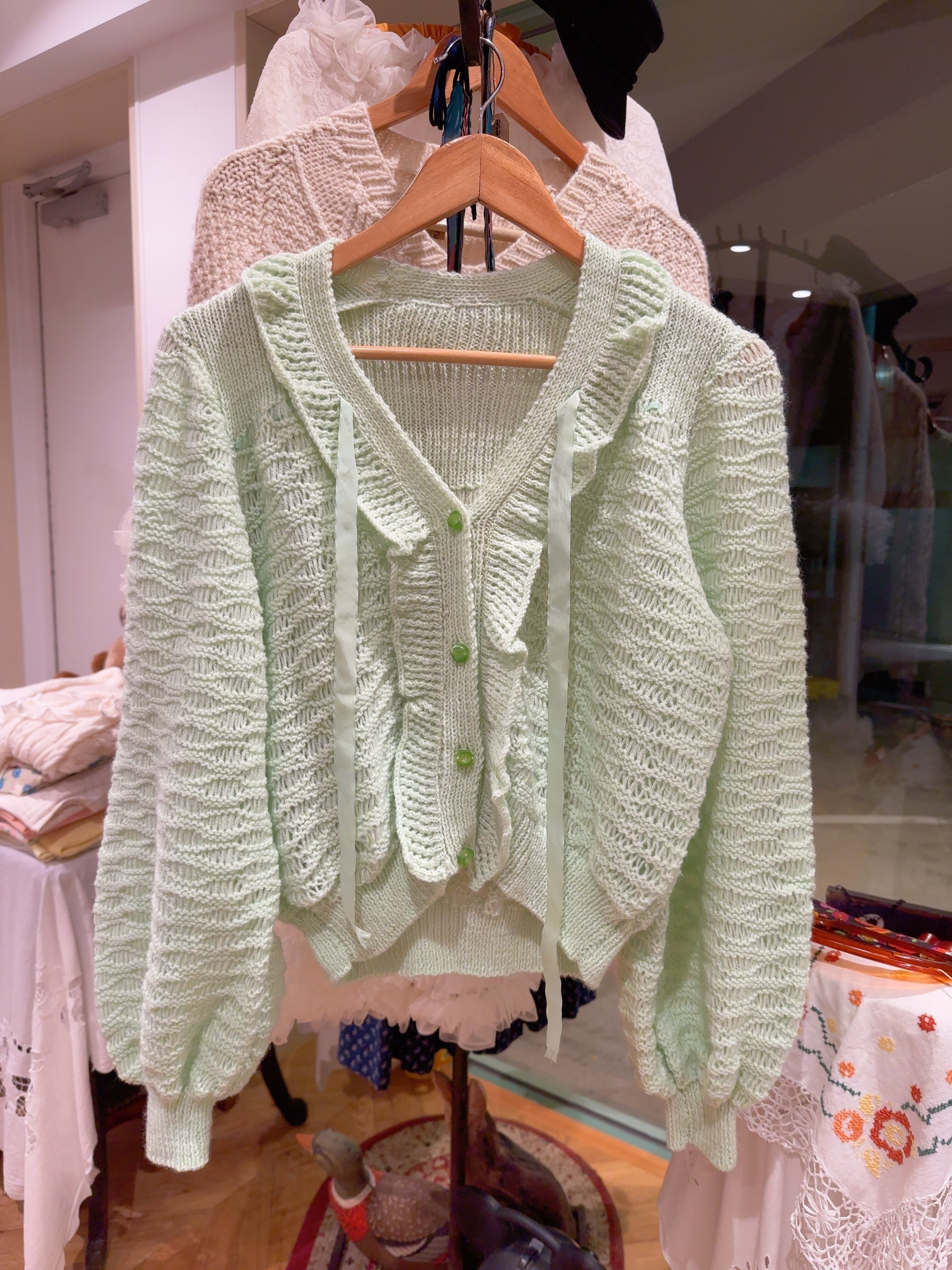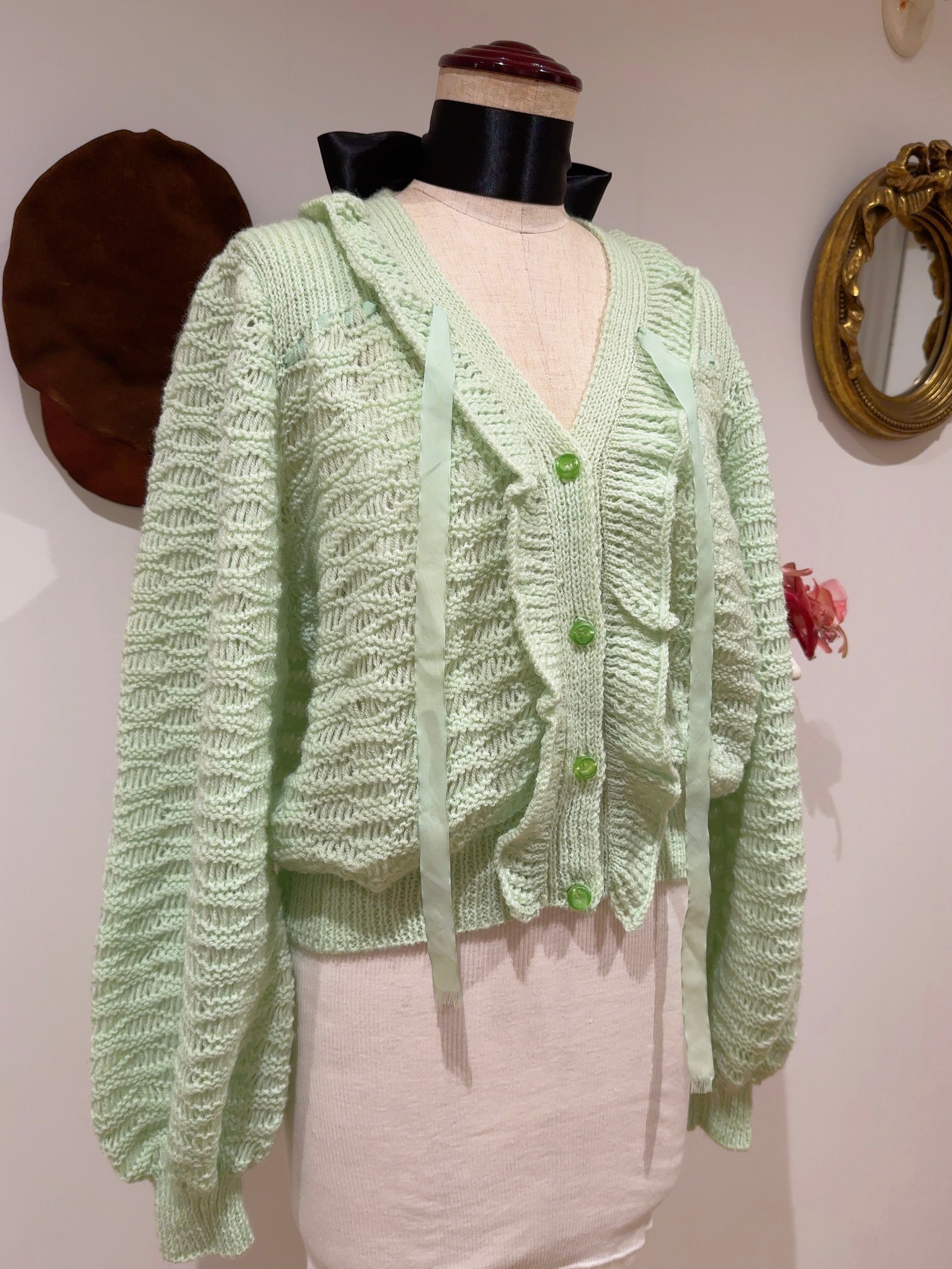 ハンドメイドのパステルグリーンのアクリルカーディガンです。