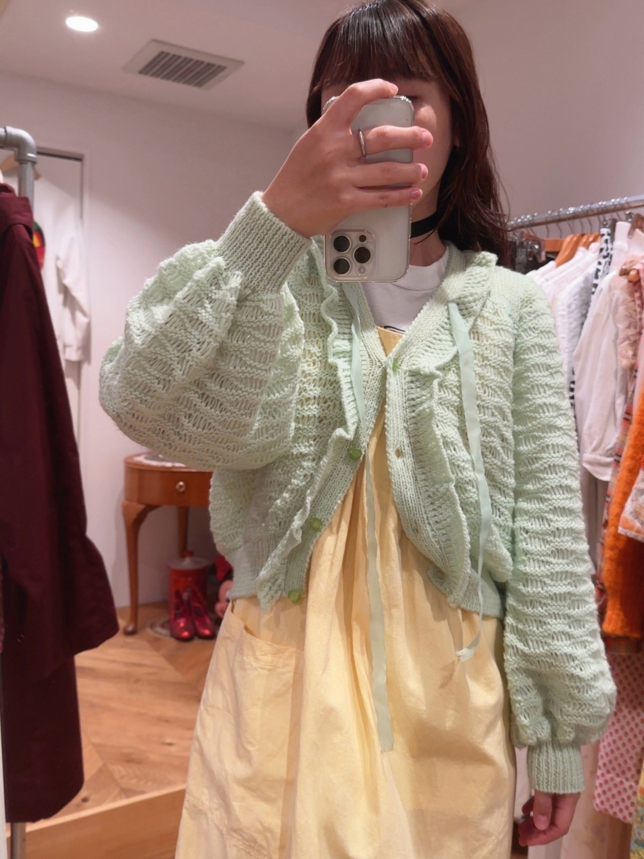 pastel green acrylic ruffle cardigan