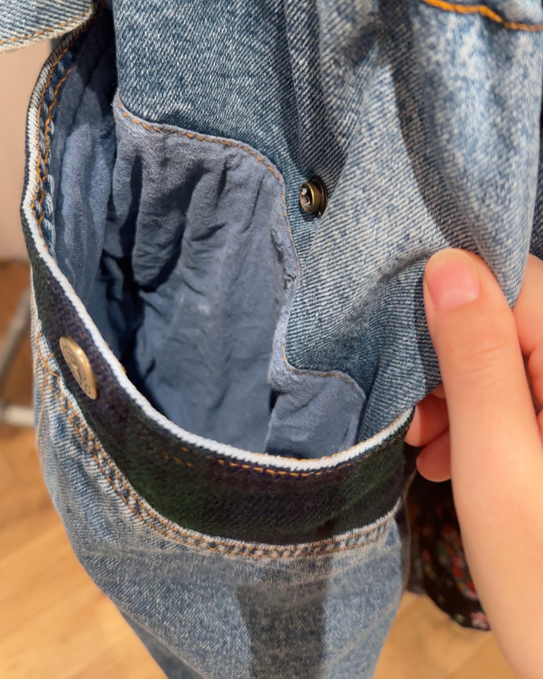 表地はデニム、総裏地はコットンと所々厚手のネル生地の仕様です。(フードの裏側や背中部分など)ポケット部分も共地のネル生地です。